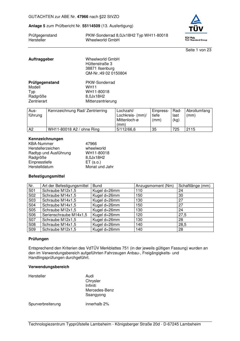 • Stimmt die KBA-Nummer auf der Felge mit diesem Dokument überein?