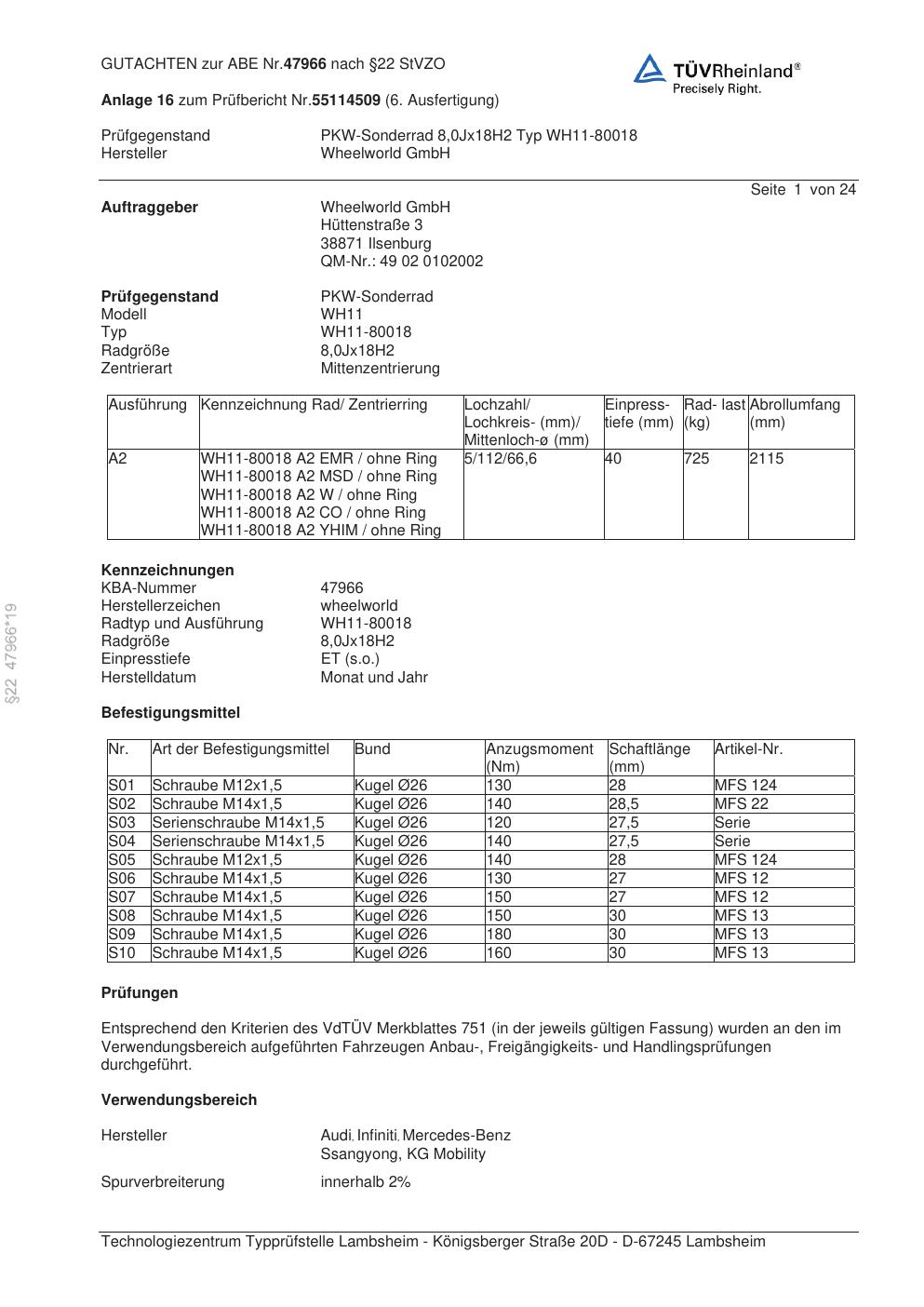 • Stimmt die KBA-Nummer auf der Felge mit diesem Dokument überein?