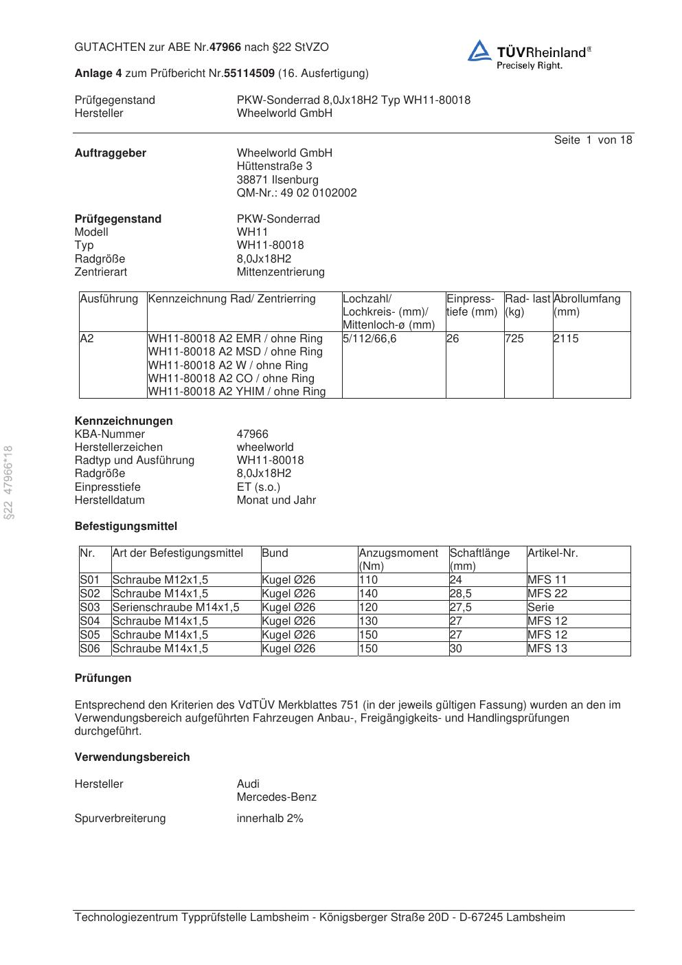 Dieses abe gehört zur Felge Wheelworld WH11-80018 in ET0 mit KBA 47966. Die Seite ist dafür gedacht, dass du schnell prüfen kannst, ob KBA, Design und Größe zu deiner Felge passen und danach direkt das richtige PDF lädst.