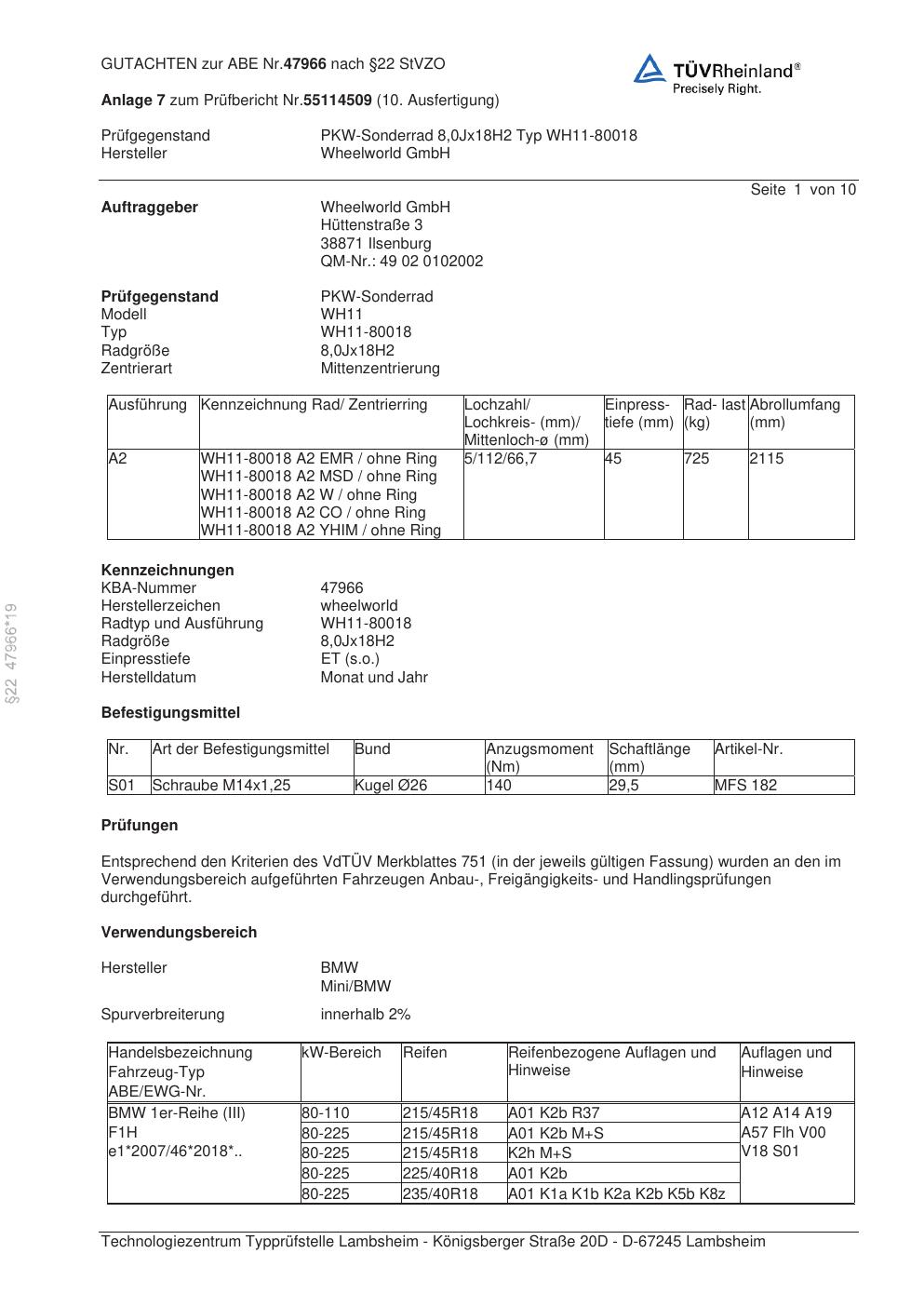 Dieses abe gehört zur Felge Wheelworld WH11-80018 in ET0 mit KBA 47966. Die Seite ist dafür gedacht, dass du schnell prüfen kannst, ob KBA, Design und Größe zu deiner Felge passen und danach direkt das richtige PDF lädst.