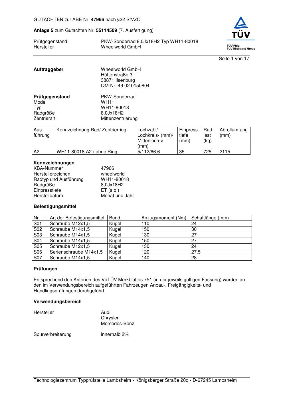 Dieses abe gehört zur Felge Wheelworld WH11-800 18 in ET0 mit KBA 47966. Die Seite ist dafür gedacht, dass du schnell prüfen kannst, ob KBA, Design und Größe zu deiner Felge passen und danach direkt das richtige PDF lädst.