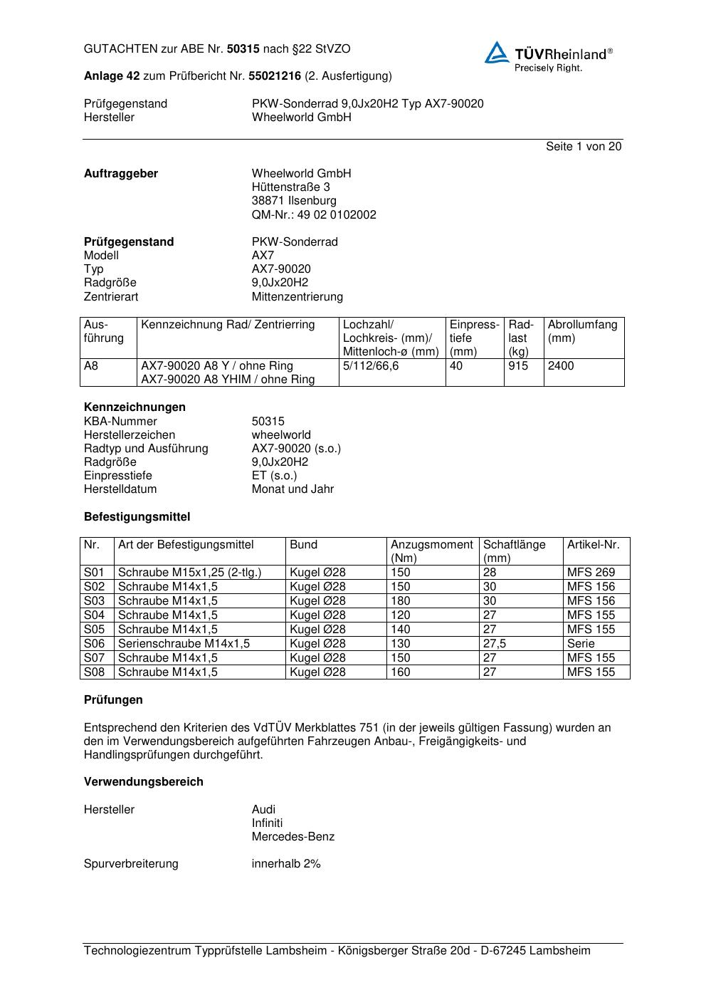 Dieses abe gehört zur Felge Wheelworld AX7-90020 in ET0 mit KBA 50315. Die Seite ist dafür gedacht, dass du schnell prüfen kannst, ob KBA, Design und Größe zu deiner Felge passen und danach direkt das richtige PDF lädst.