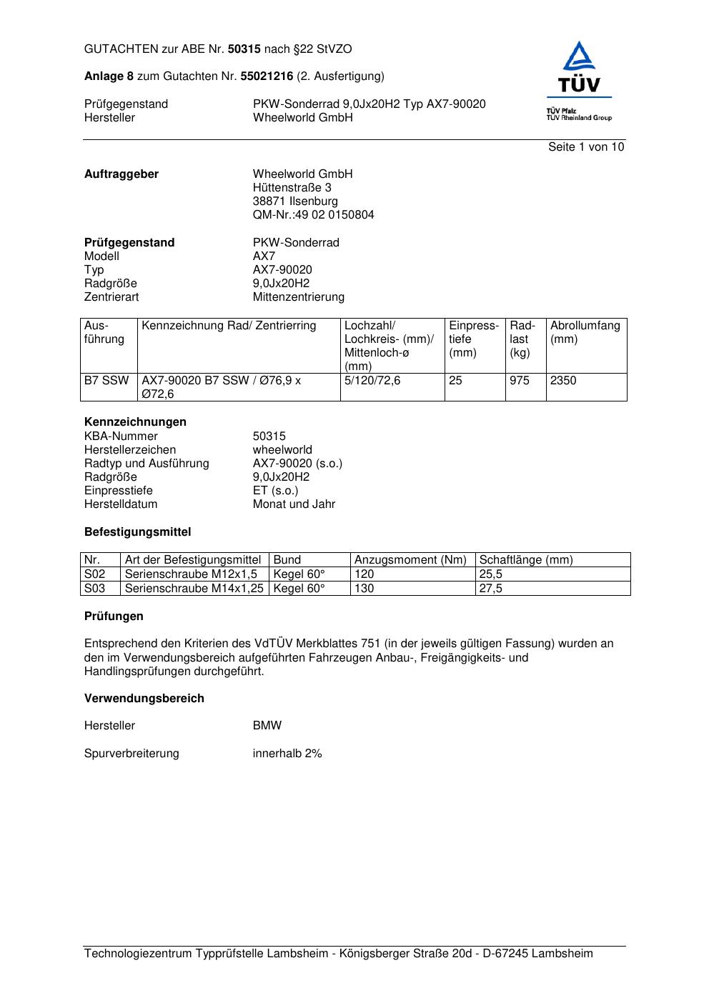 Dieses abe gehört zur Felge Wheelworld AX7-90020 in ET0 mit KBA 50315. Die Seite ist dafür gedacht, dass du schnell prüfen kannst, ob KBA, Design und Größe zu deiner Felge passen und danach direkt das richtige PDF lädst.
