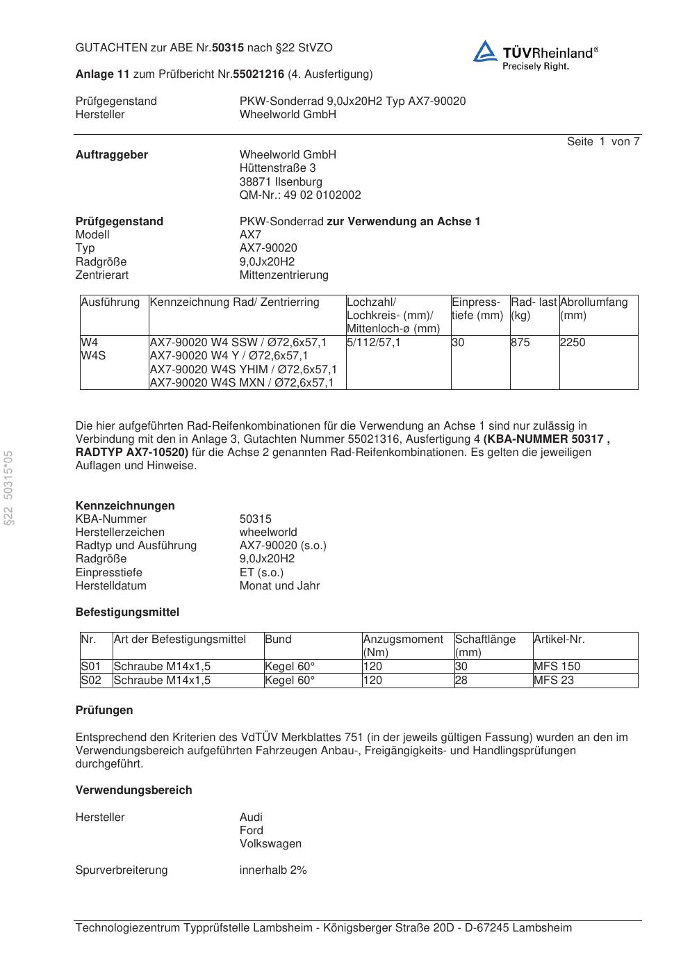 Dieses abe gehört zur Felge Wheelworld AX7-90020 in ET0 mit KBA 50315. Die Seite ist dafür gedacht, dass du schnell prüfen kannst, ob KBA, Design und Größe zu deiner Felge passen und danach direkt das richtige PDF lädst.