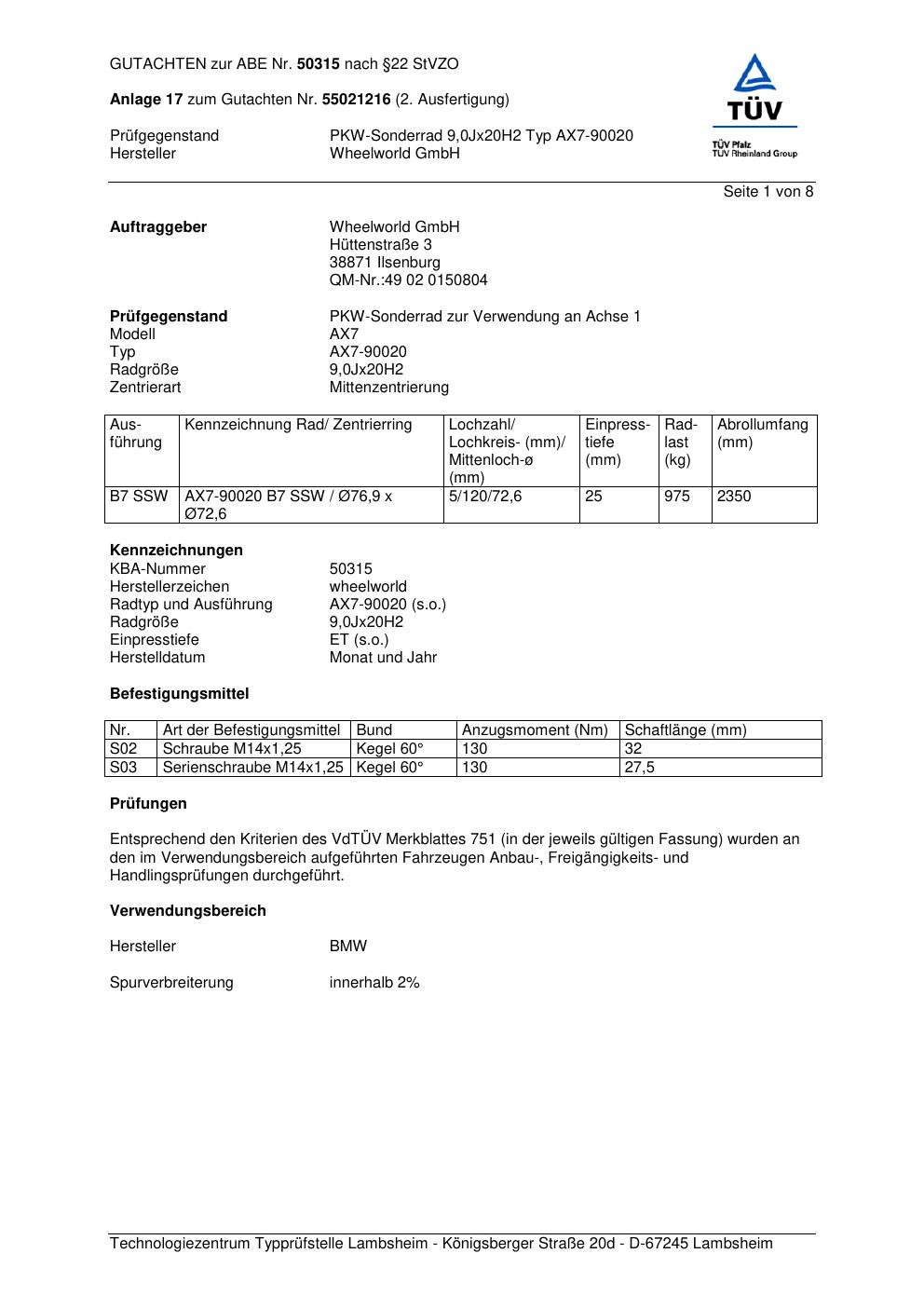 Dieses abe gehört zur Felge Wheelworld AX7-90020 in ET0 mit KBA 50315. Die Seite ist dafür gedacht, dass du schnell prüfen kannst, ob KBA, Design und Größe zu deiner Felge passen und danach direkt das richtige PDF lädst.
