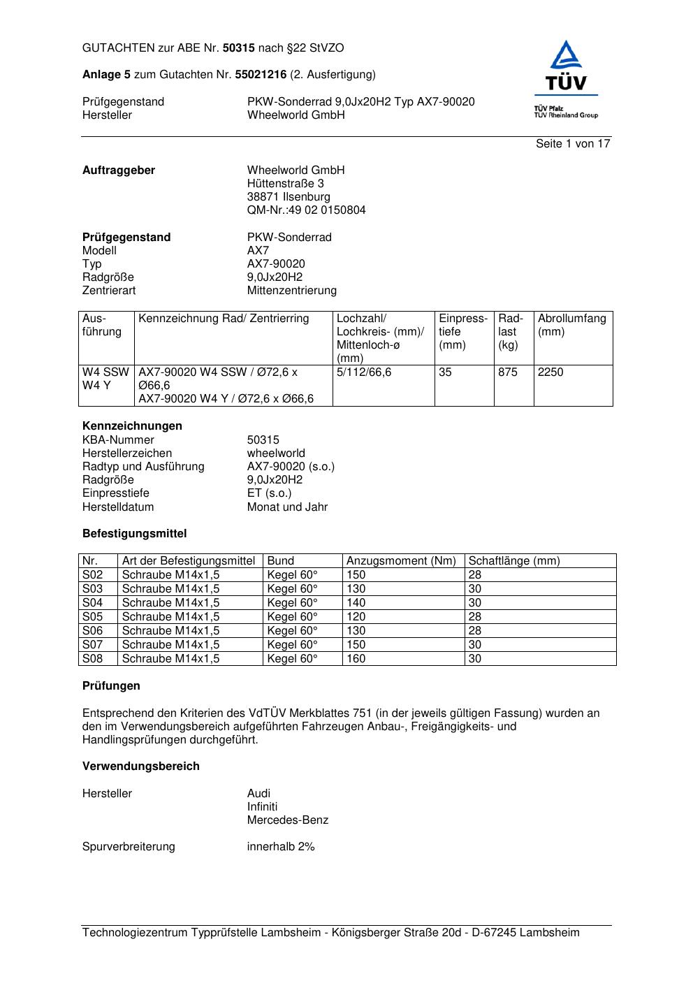 Dieses abe gehört zur Felge Wheelworld AX7-90020 in ET0 mit KBA 50315. Die Seite ist dafür gedacht, dass du schnell prüfen kannst, ob KBA, Design und Größe zu deiner Felge passen und danach direkt das richtige PDF lädst.