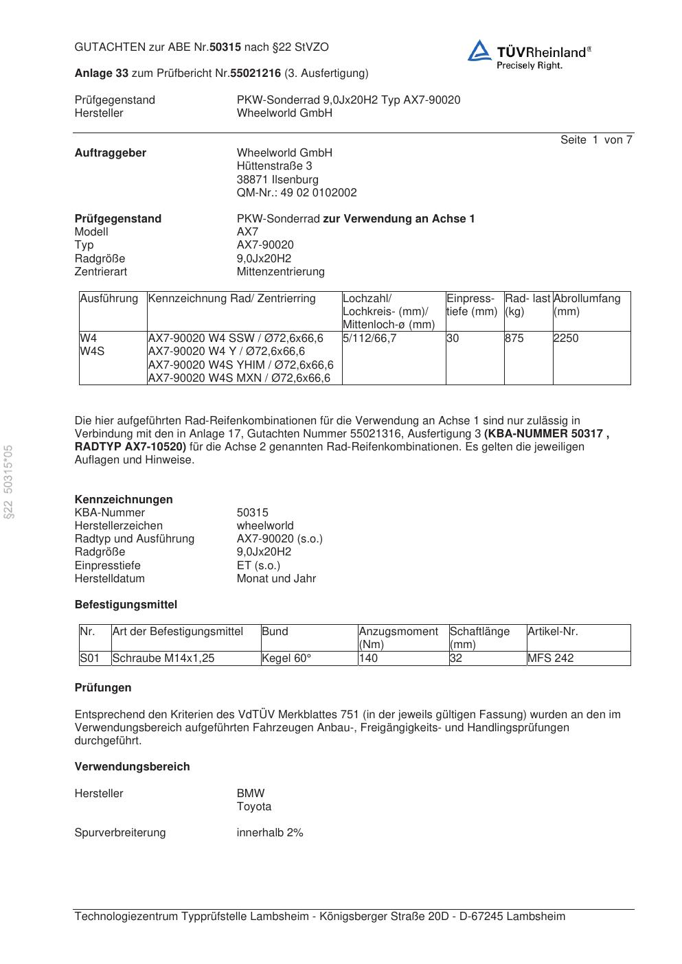 Dieses abe gehört zur Felge Wheelworld AX7-90020 in ET0 mit KBA 50315. Die Seite ist dafür gedacht, dass du schnell prüfen kannst, ob KBA, Design und Größe zu deiner Felge passen und danach direkt das richtige PDF lädst.