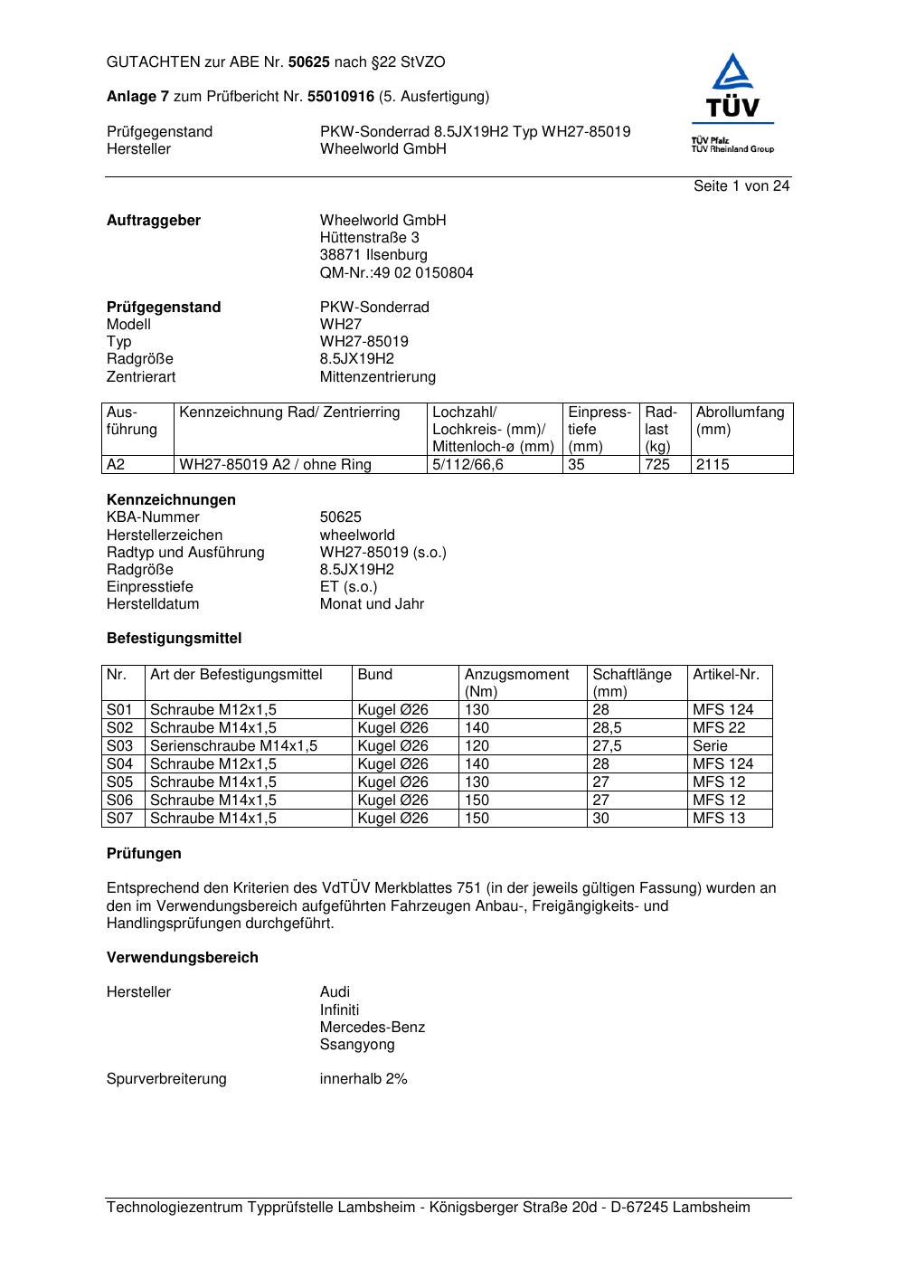 • Stimmt die KBA-Nummer auf der Felge mit diesem Dokument überein?