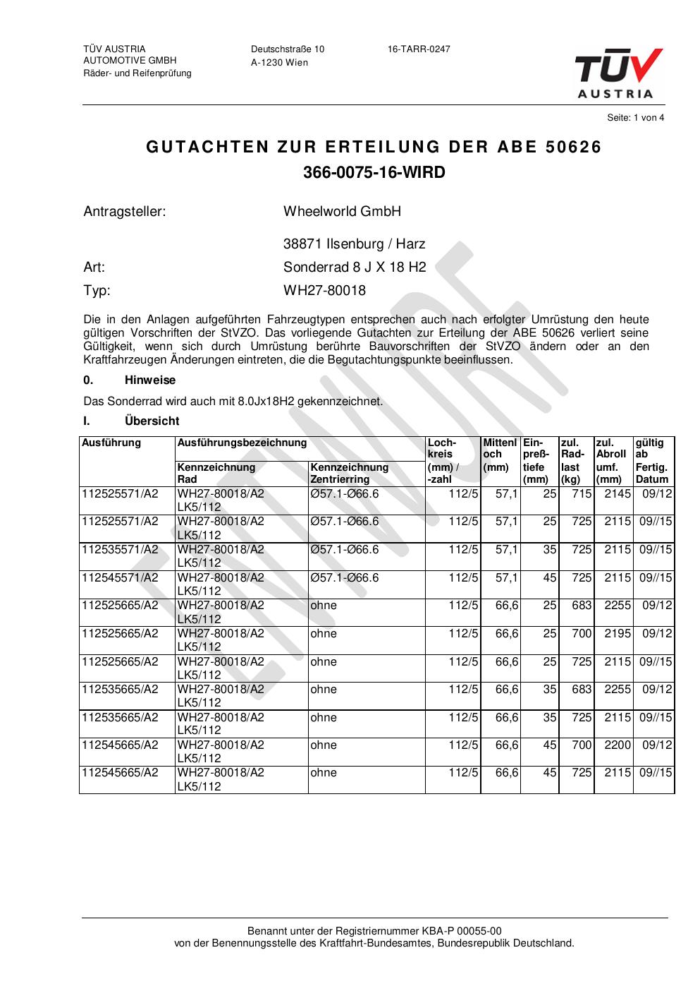 Dieses abe gehört zur Felge Wheelworld WH27 -80018 in ET0 mit KBA 50626. Die Seite ist dafür gedacht, dass du schnell prüfen kannst, ob KBA, Design und Größe zu deiner Felge passen und danach direkt das richtige PDF lädst.