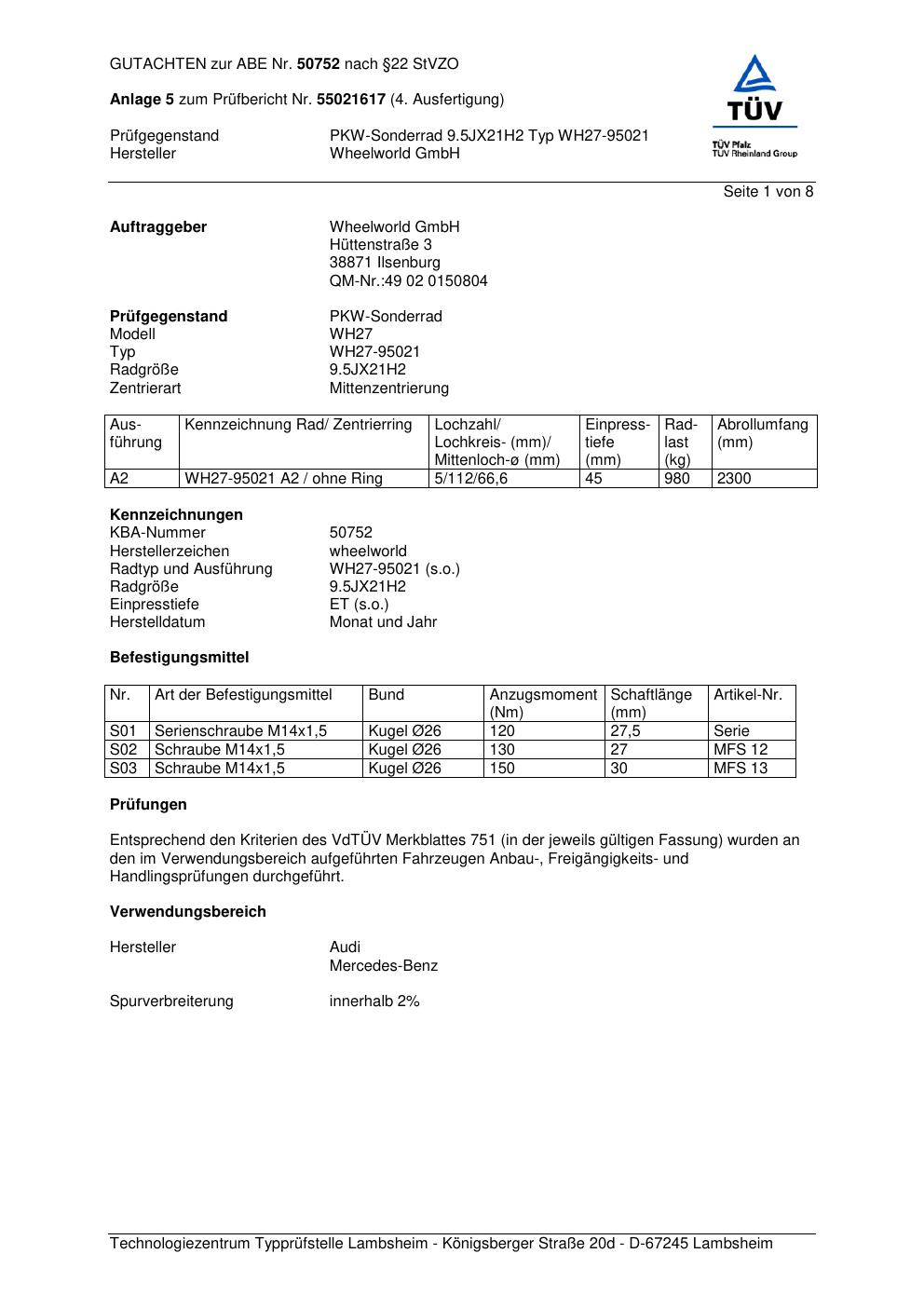 Dieses abe der Marke Wheelworld stammt vom jeweiligen Hersteller, Importeur oder einer Prüforganisation. Felgengutachten.de beansprucht hieran keine eigenen Urheber-, Nutzungs- oder sonstigen Schutzrechte. Soweit das Dokument urheber- oder leistungsschutzrechtlich geschützt ist, verbleiben die Rechte beim jeweiligen Rechteinhaber. Die Bereitstellung erfolgt ausschließlich zu Informationszwecken für Endnutzer, z. B. zur Vorlage bei Prüfstellen oder zur eigenen Fahrzeugdokumentation.