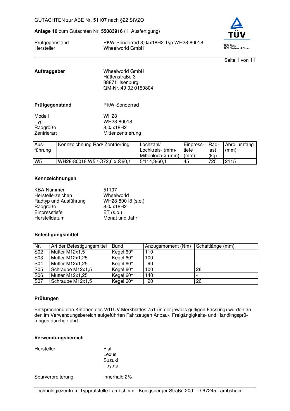 Dieses abe gehört zur Felge Wheelworld WH28-80018 in ET0 mit KBA 51107. Die Seite ist dafür gedacht, dass du schnell prüfen kannst, ob KBA, Design und Größe zu deiner Felge passen und danach direkt das richtige PDF lädst.