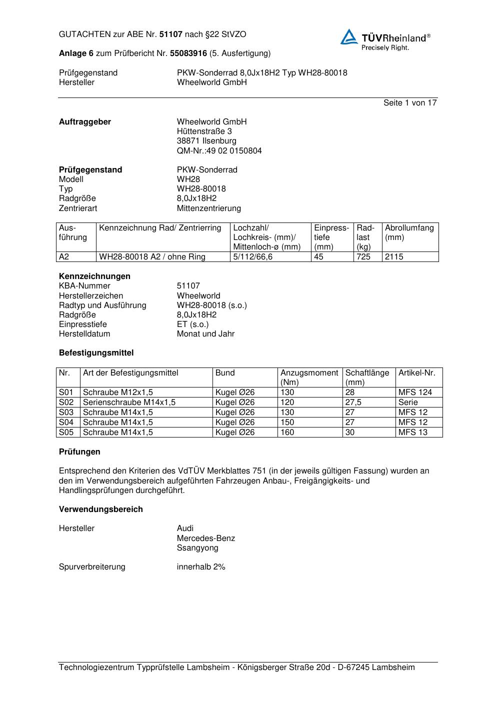 Dieses abe gehört zur Felge Wheelworld WH28-80018 in ET0 mit KBA 51107. Die Seite ist dafür gedacht, dass du schnell prüfen kannst, ob KBA, Design und Größe zu deiner Felge passen und danach direkt das richtige PDF lädst.