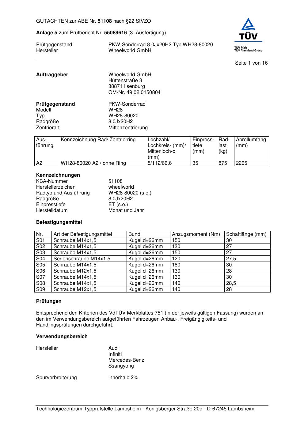 • Stimmt die KBA-Nummer auf der Felge mit diesem Dokument überein?