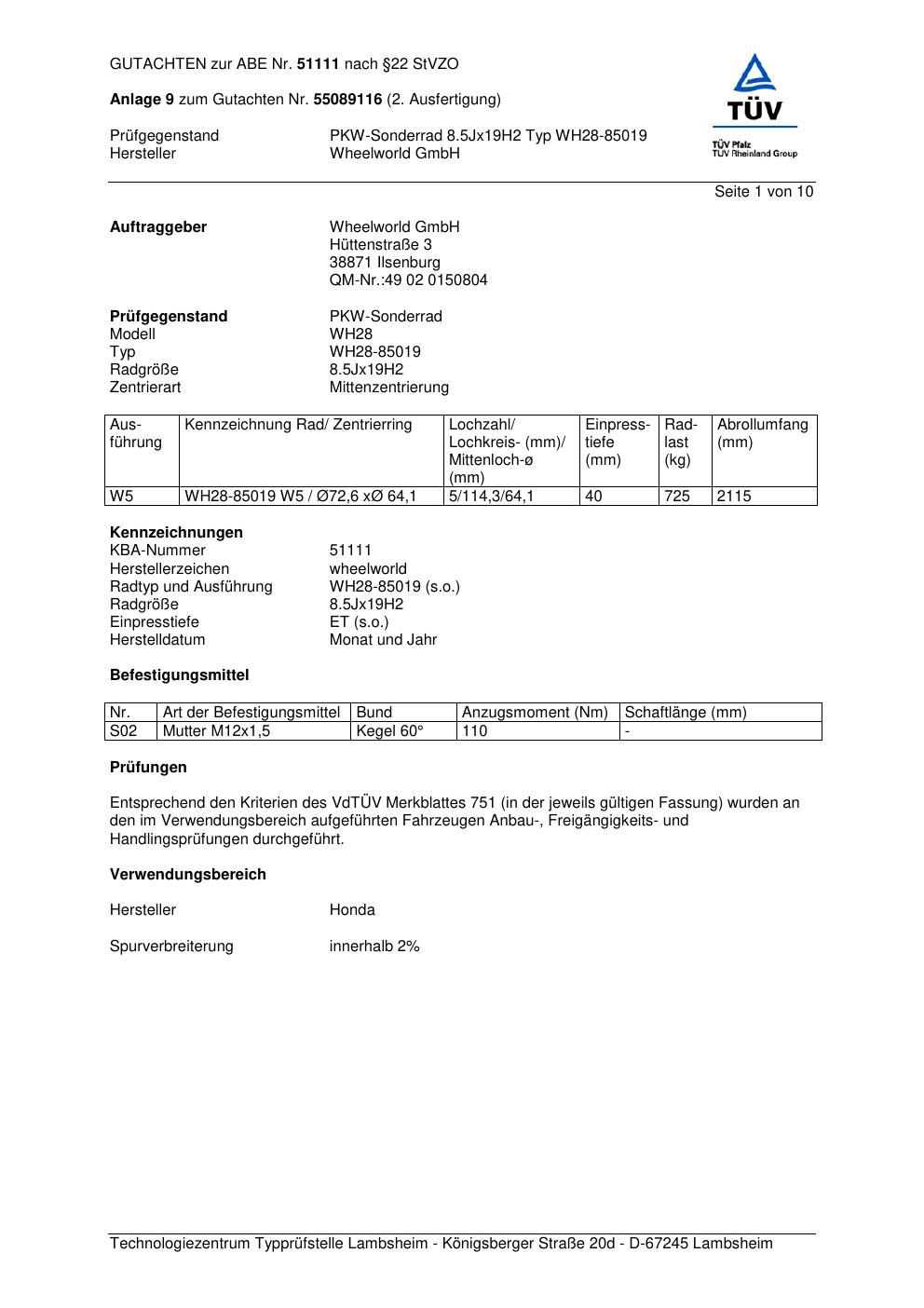 Dieses abe gehört zur Felge Wheelworld WH28-85019 in ET0 mit KBA 51111. Die Seite ist dafür gedacht, dass du schnell prüfen kannst, ob KBA, Design und Größe zu deiner Felge passen und danach direkt das richtige PDF lädst.