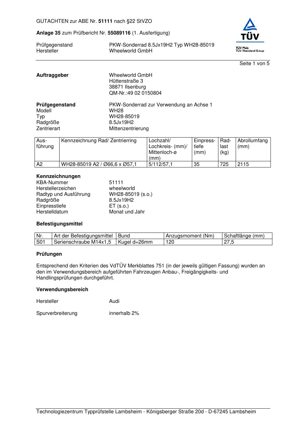 Dieses abe gehört zur Felge Wheelworld WH28-85019 in ET0 mit KBA 51111. Die Seite ist dafür gedacht, dass du schnell prüfen kannst, ob KBA, Design und Größe zu deiner Felge passen und danach direkt das richtige PDF lädst.