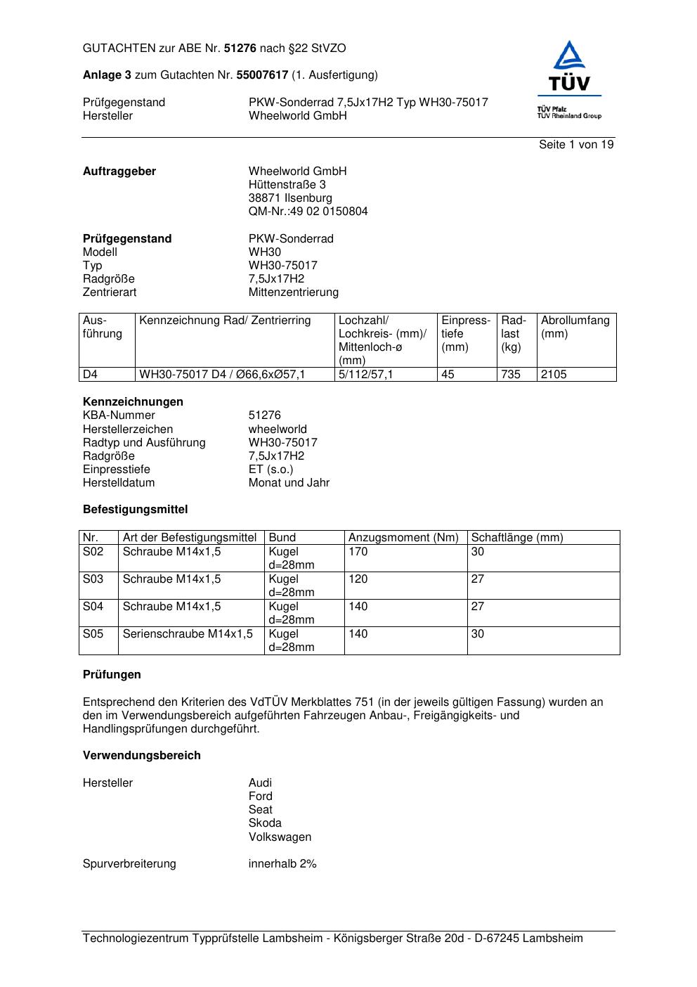 Dieses abe gehört zur Felge Wheelworld WH30-75017 in ET0 mit KBA 51276. Die Seite ist dafür gedacht, dass du schnell prüfen kannst, ob KBA, Design und Größe zu deiner Felge passen und danach direkt das richtige PDF lädst.