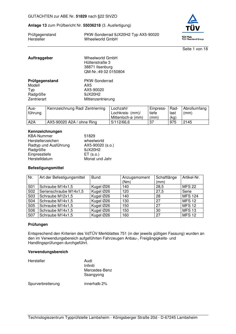 Dieses abe gehört zur Felge Wheelworld AX5-90020 in ET0 mit KBA 51829. Die Seite ist dafür gedacht, dass du schnell prüfen kannst, ob KBA, Design und Größe zu deiner Felge passen und danach direkt das richtige PDF lädst.
