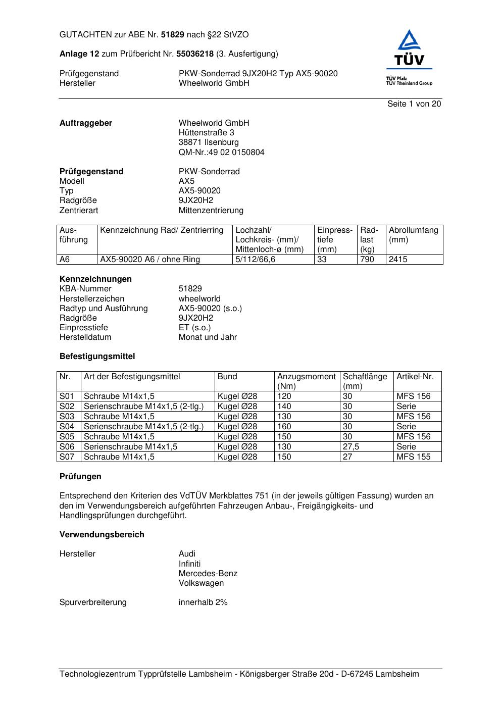 Dieses abe gehört zur Felge Wheelworld AX5-90020 in ET0 mit KBA 51829. Die Seite ist dafür gedacht, dass du schnell prüfen kannst, ob KBA, Design und Größe zu deiner Felge passen und danach direkt das richtige PDF lädst.
