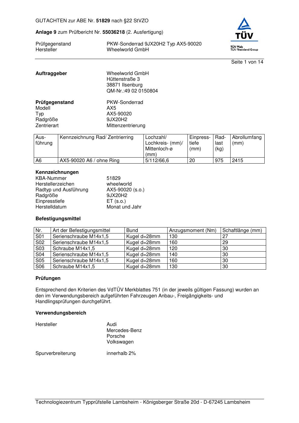 Dieses abe gehört zur Felge Wheelworld AX5-90020 in ET0 mit KBA 51829. Die Seite ist dafür gedacht, dass du schnell prüfen kannst, ob KBA, Design und Größe zu deiner Felge passen und danach direkt das richtige PDF lädst.