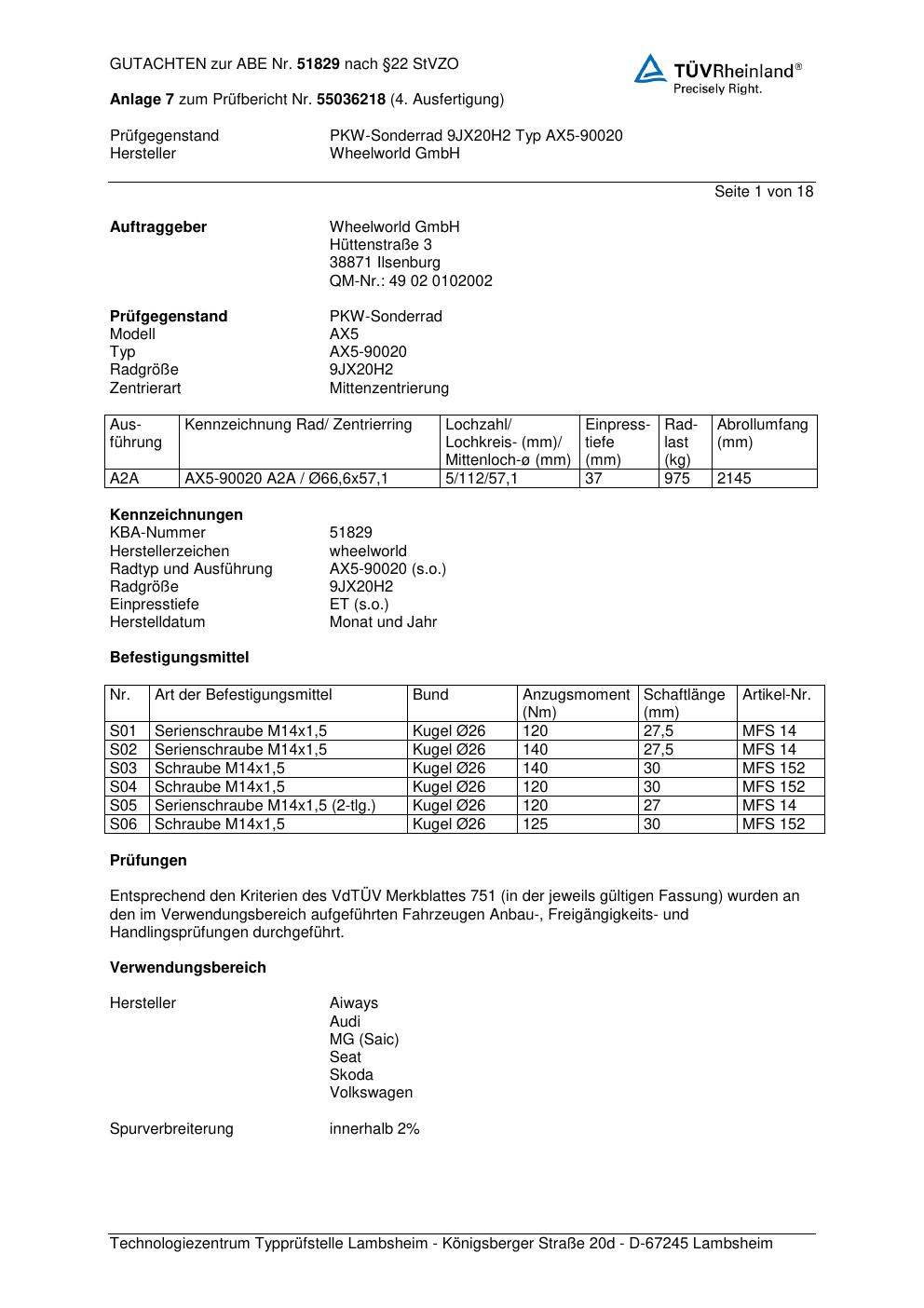 Dieses abe gehört zur Felge Wheelworld AX5-90020 in ET0 mit KBA 51829. Die Seite ist dafür gedacht, dass du schnell prüfen kannst, ob KBA, Design und Größe zu deiner Felge passen und danach direkt das richtige PDF lädst.
