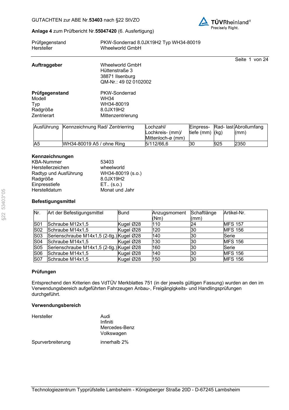 • Stimmt die KBA-Nummer auf der Felge mit diesem Dokument überein?