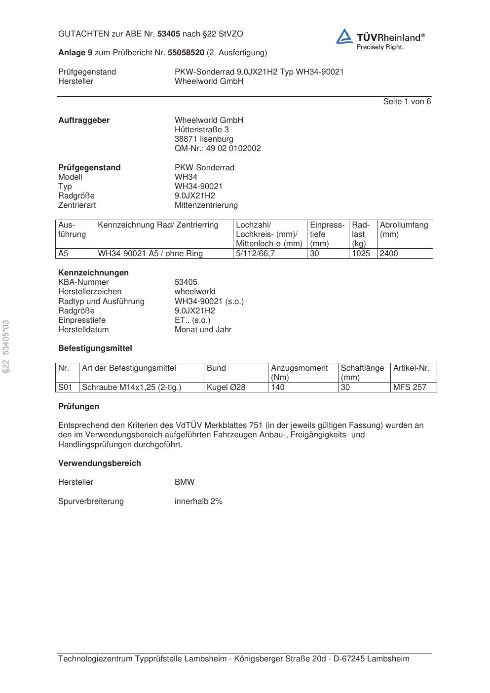 • Stimmt die KBA-Nummer auf der Felge mit diesem Dokument überein?