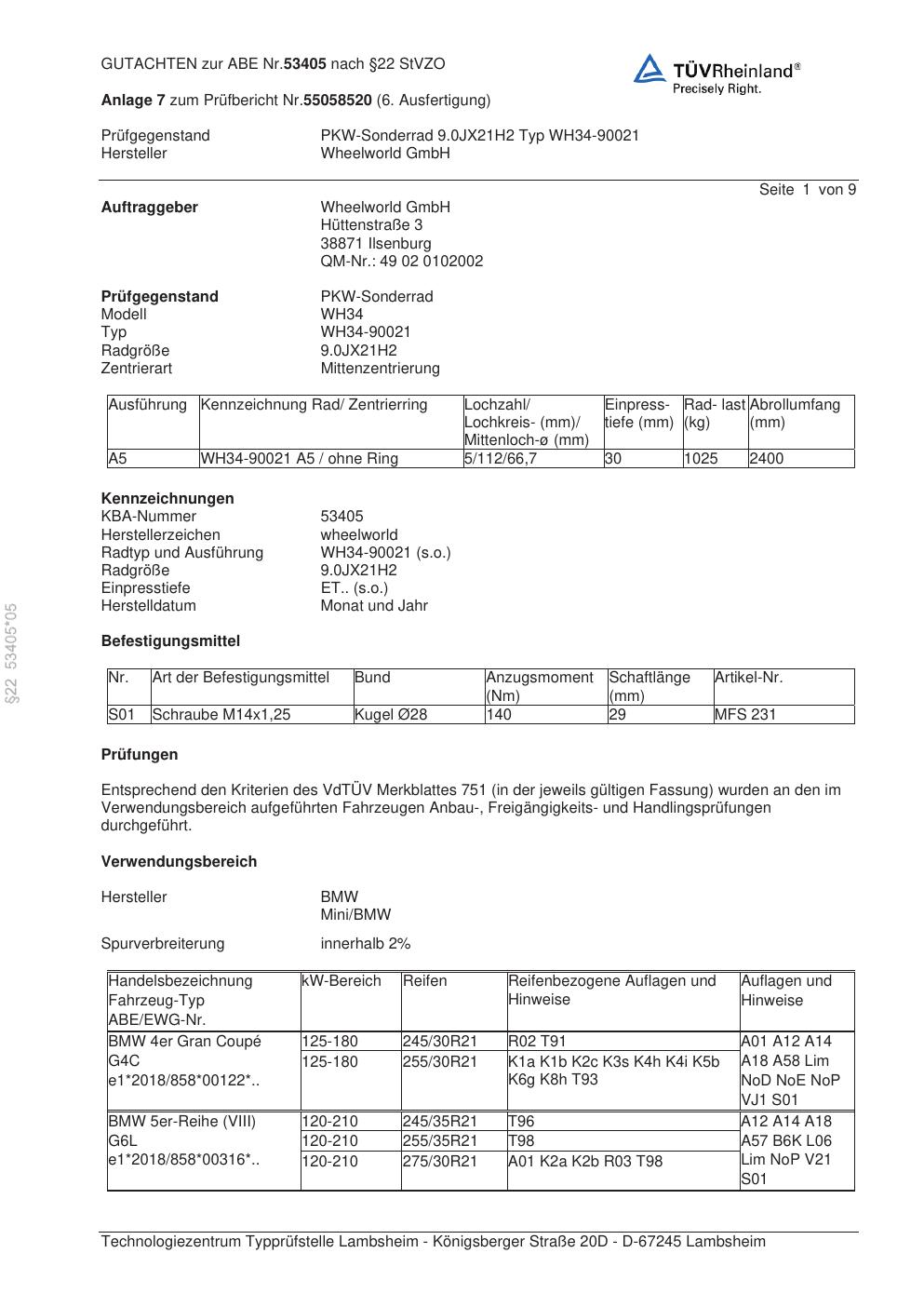 • Stimmt die KBA-Nummer auf der Felge mit diesem Dokument überein?
