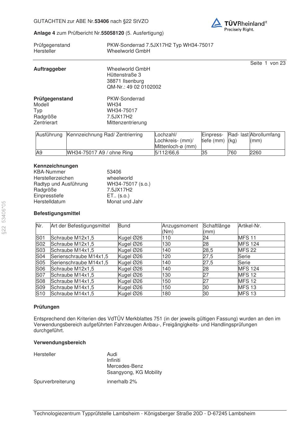 • Stimmt die KBA-Nummer auf der Felge mit diesem Dokument überein?