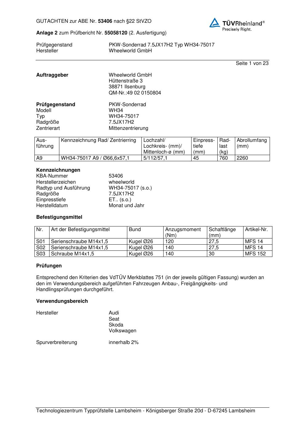 Dieses abe gehört zur Felge Wheelworld WH34-75017 in ET0 mit KBA 53406. Die Seite ist dafür gedacht, dass du schnell prüfen kannst, ob KBA, Design und Größe zu deiner Felge passen und danach direkt das richtige PDF lädst.