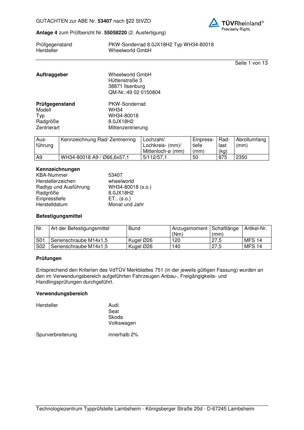 • Prüfe, ob Marke und Serie (Wheelworld WH34-800 18) wirklich zur gesuchten Felge passen.