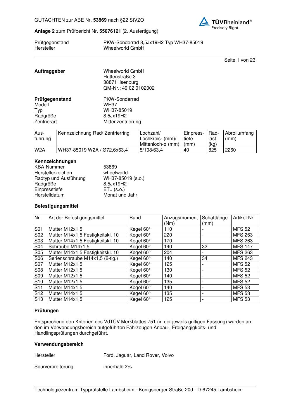• Stimmt die KBA-Nummer auf der Felge mit diesem Dokument überein?