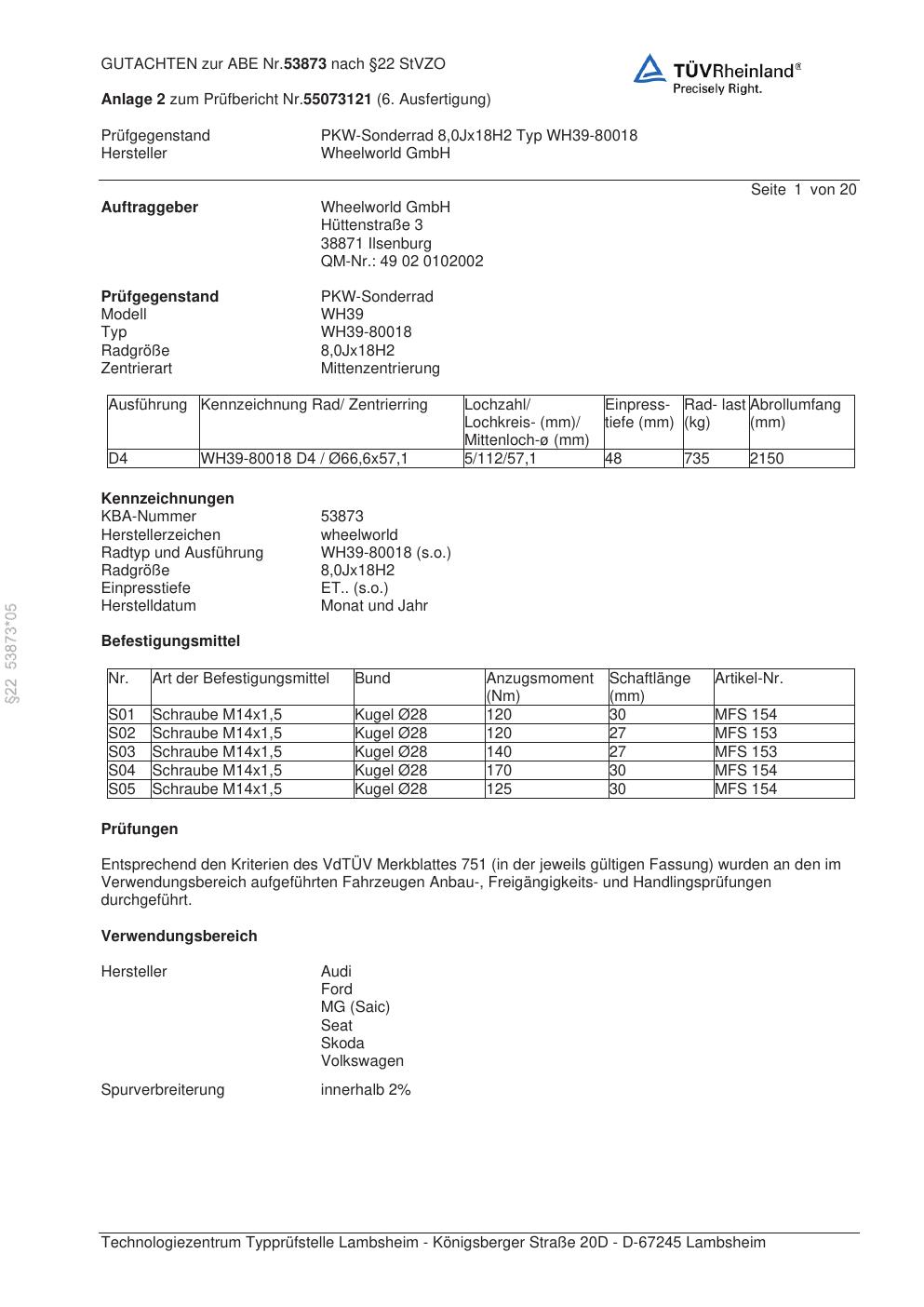• Stimmt die KBA-Nummer auf der Felge mit diesem Dokument überein?