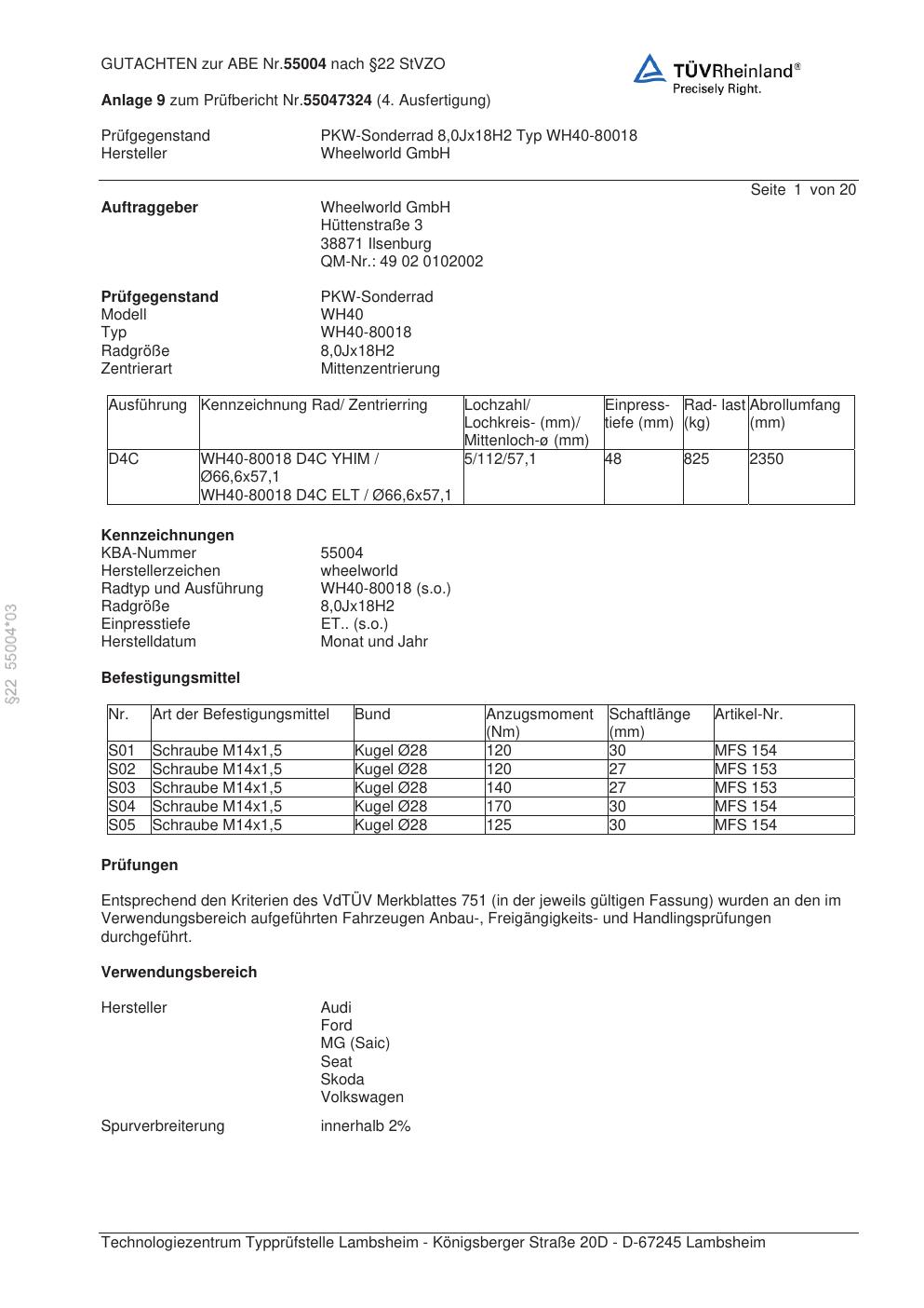 • Stimmt die KBA-Nummer auf der Felge mit diesem Dokument überein?