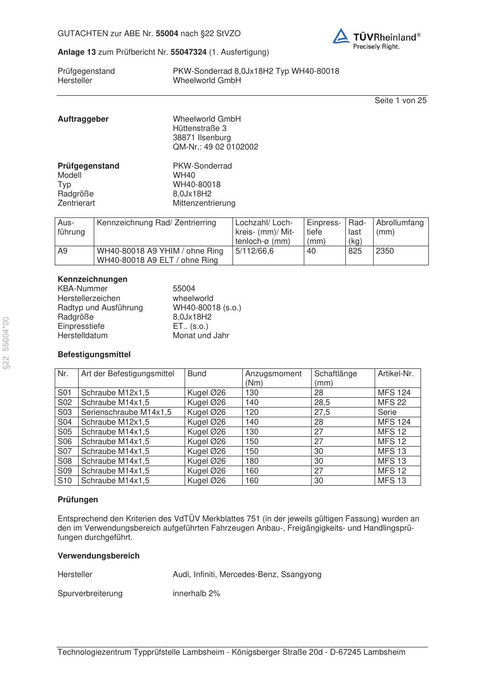 • Stimmt die KBA-Nummer auf der Felge mit diesem Dokument überein?