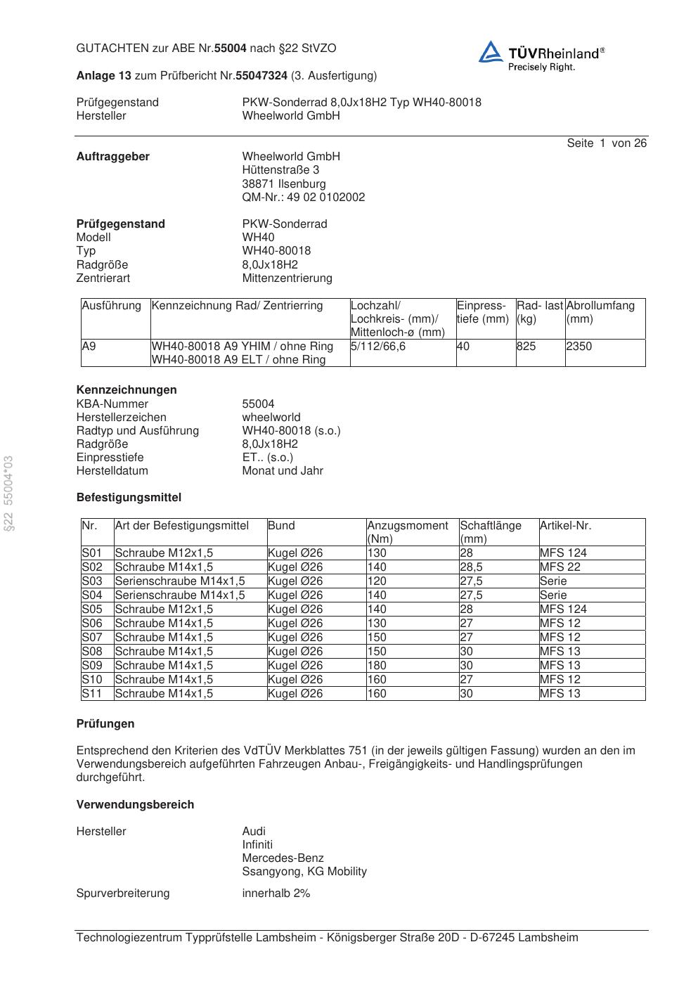 • Stimmt die KBA-Nummer auf der Felge mit diesem Dokument überein?