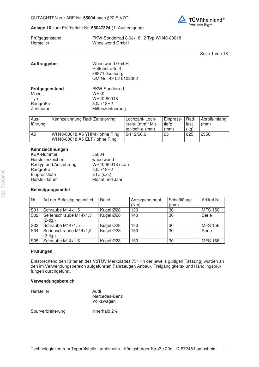 Dieses abe gehört zur Felge Wheelworld WH40-80018 in ET0 mit KBA 55004. Die Seite ist dafür gedacht, dass du schnell prüfen kannst, ob KBA, Design und Größe zu deiner Felge passen und danach direkt das richtige PDF lädst.