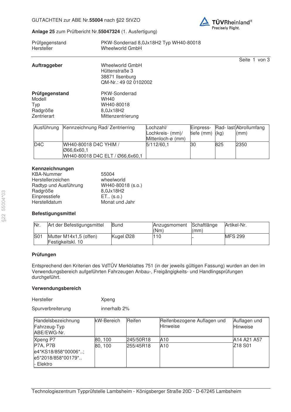 • Stimmt die KBA-Nummer auf der Felge mit diesem Dokument überein?