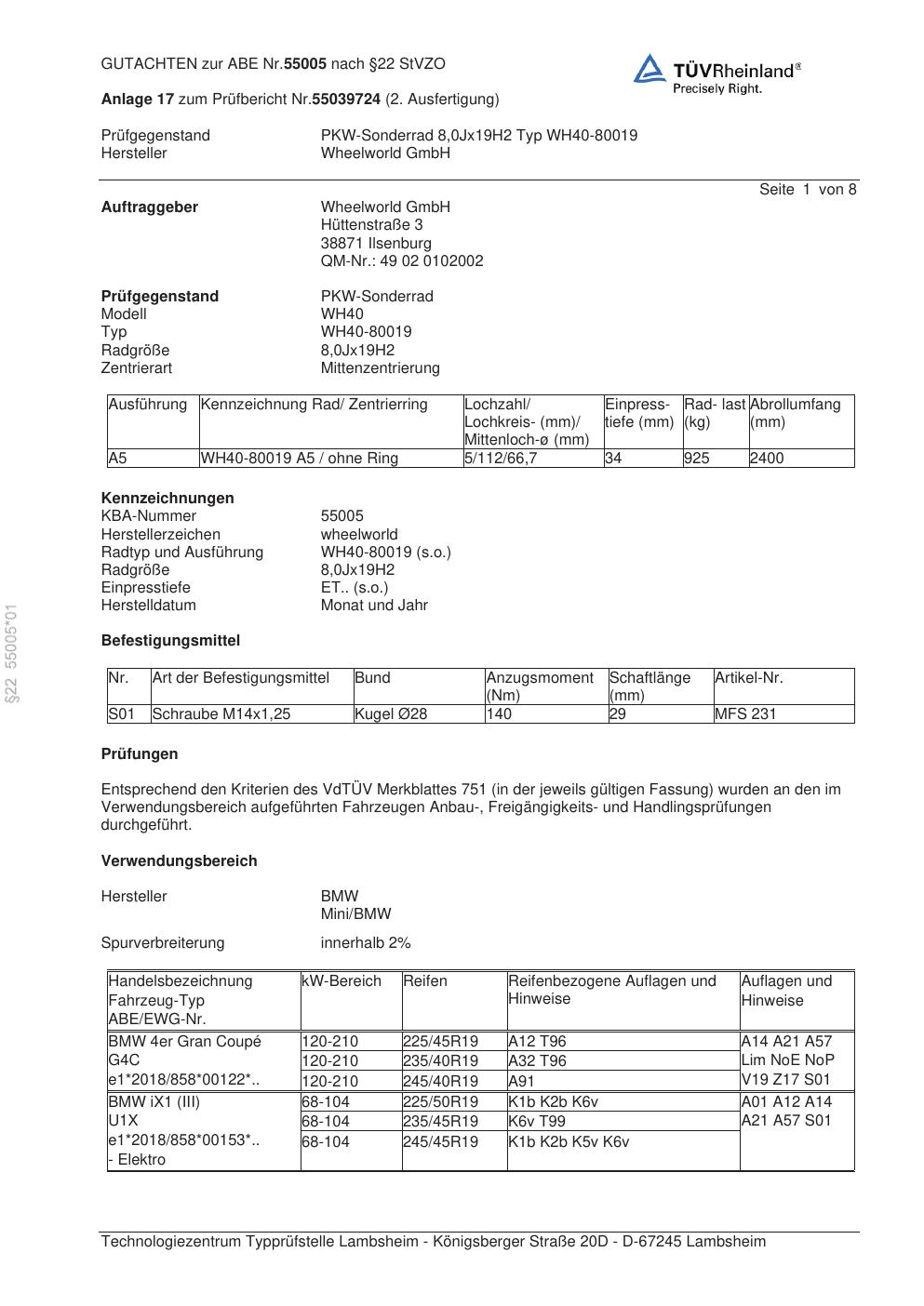 • Stimmt die KBA-Nummer auf der Felge mit diesem Dokument überein?