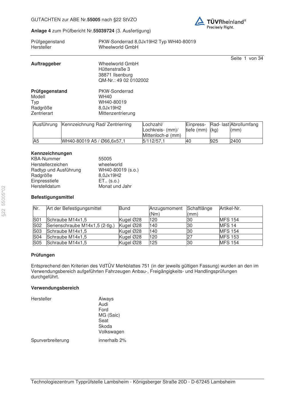 • Stimmt die KBA-Nummer auf der Felge mit diesem Dokument überein?
