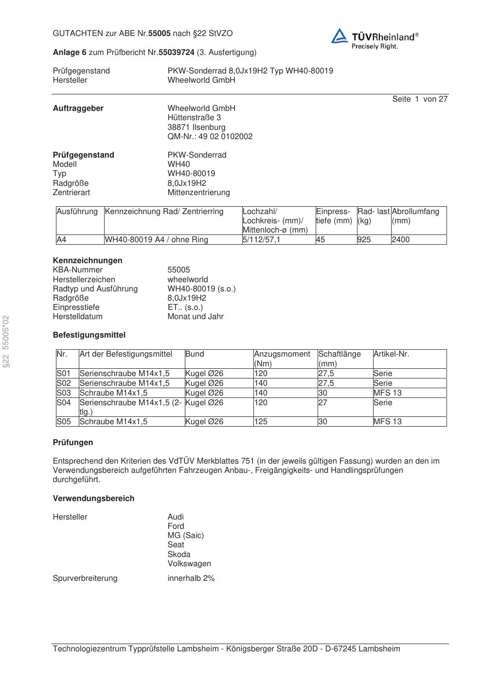• Stimmt die KBA-Nummer auf der Felge mit diesem Dokument überein?