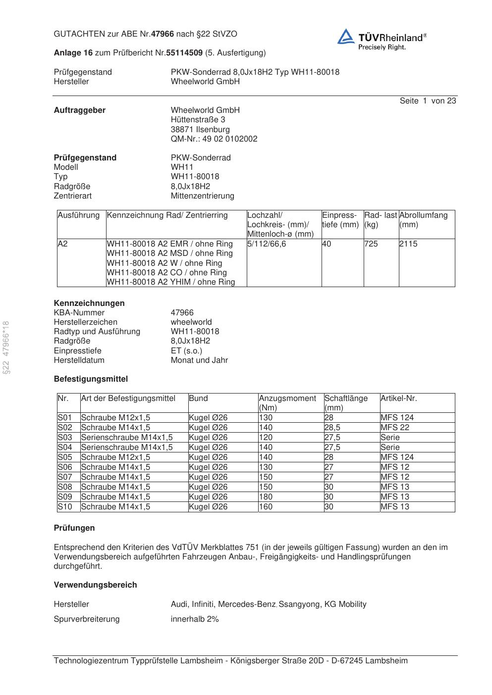 • Stimmt die KBA-Nummer auf der Felge mit diesem Dokument überein?