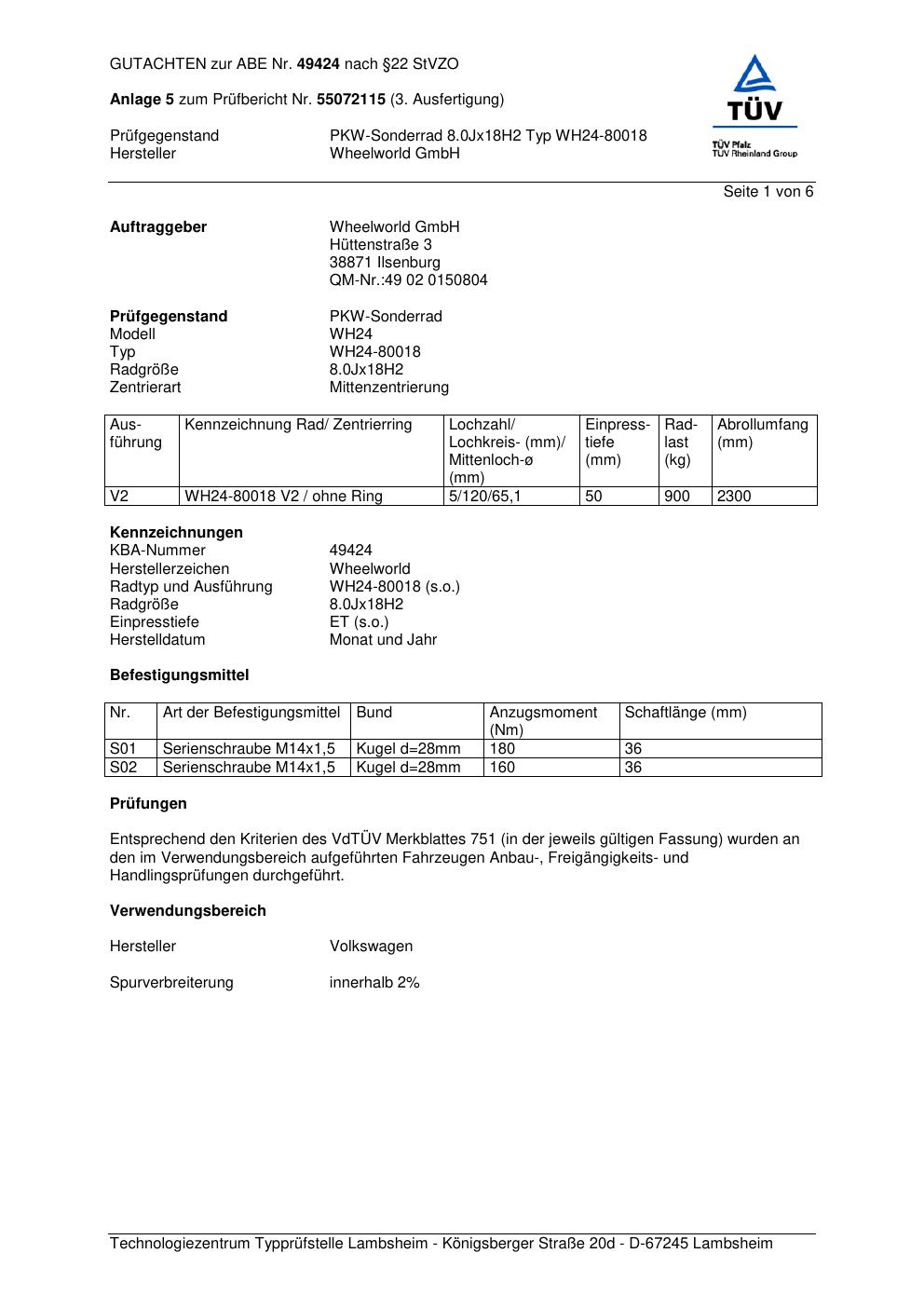 - Stimmt die KBA-Nummer auf der Felge mit diesem Dokument überein?