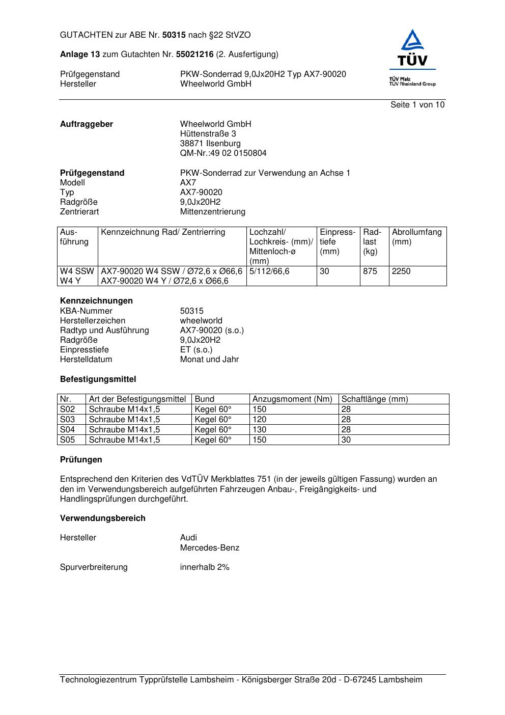 Dieses abe gehört zur Felge Wheelworld AX7-90020 in ET0 mit KBA 50315. Die Seite ist dafür gedacht, dass du schnell prüfen kannst, ob KBA, Design und Größe zu deiner Felge passen und danach direkt das richtige PDF lädst.