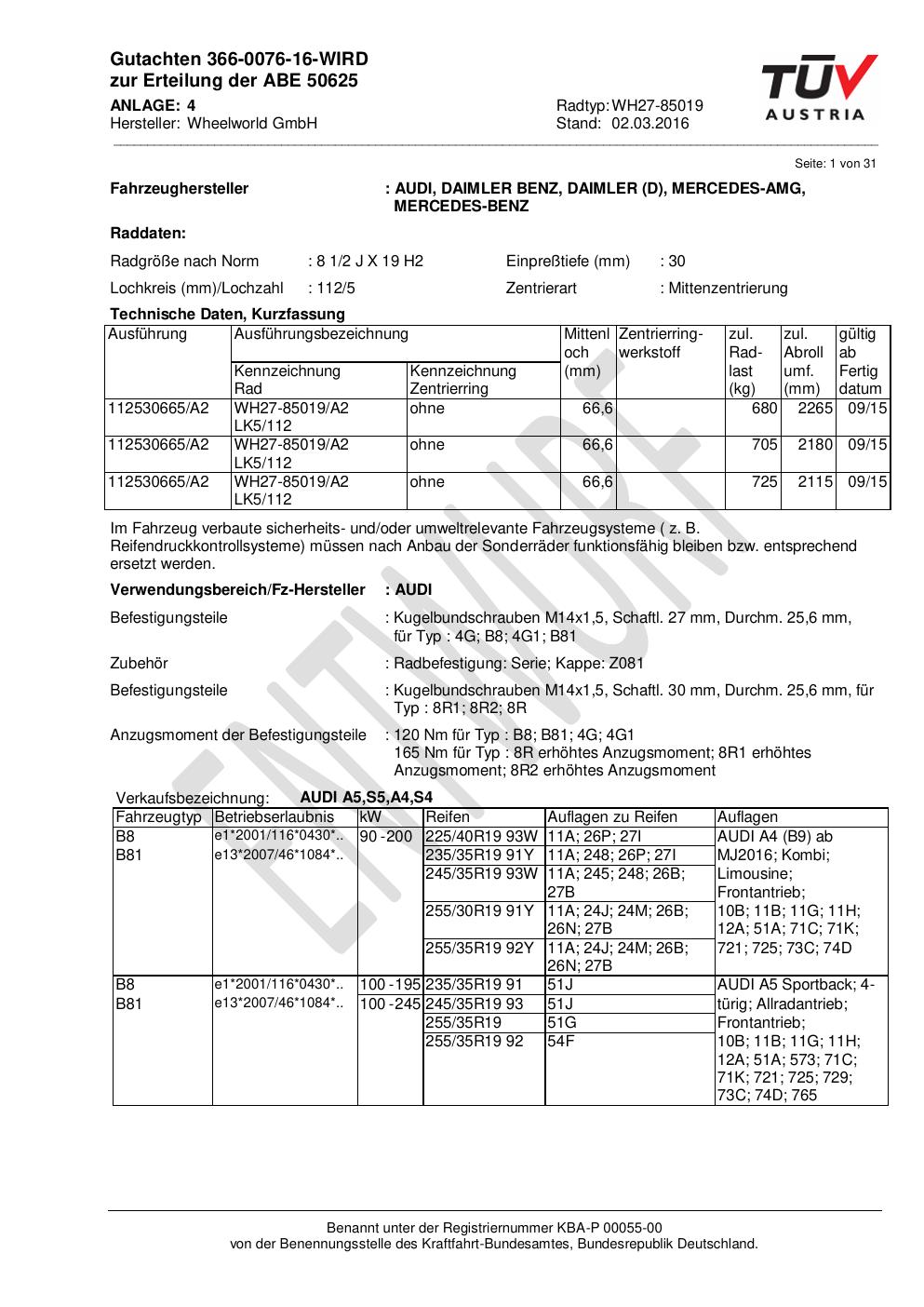 • Stimmt die KBA-Nummer auf der Felge mit diesem Dokument überein?