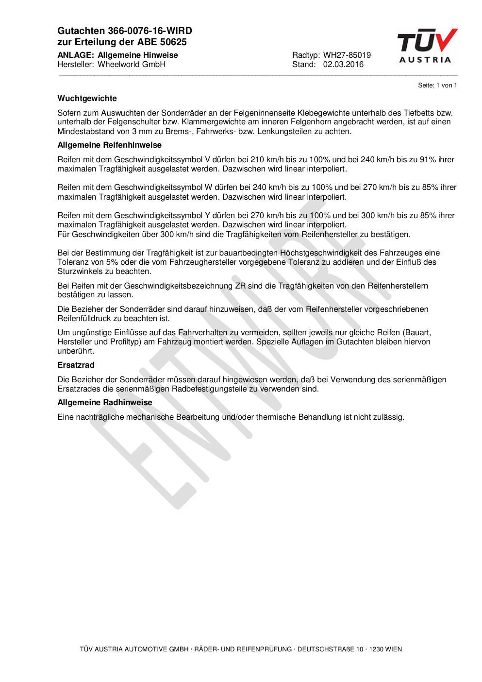 • Stimmt die KBA-Nummer auf der Felge mit diesem Dokument überein?