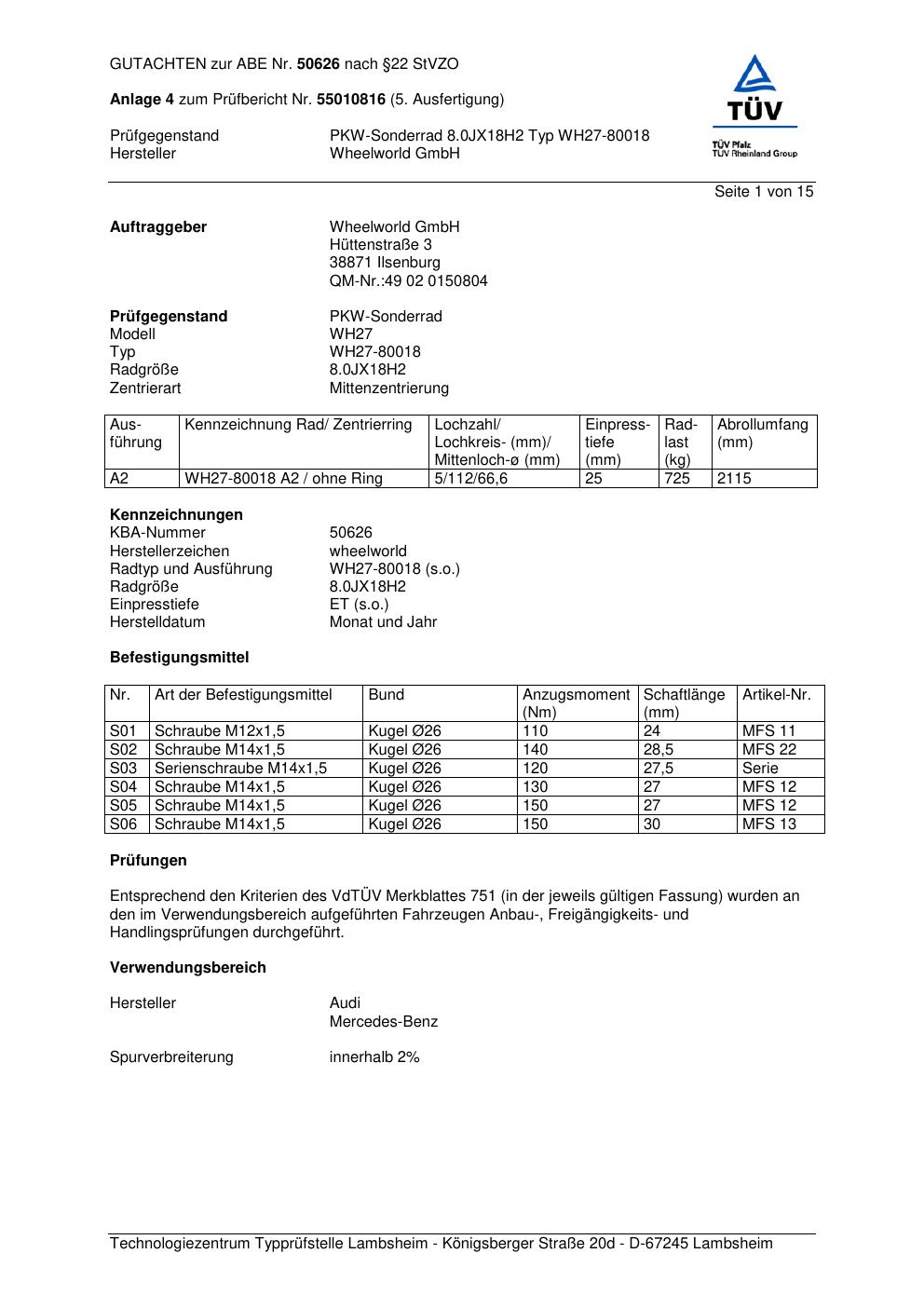 Dieses abe gehört zur Felge Wheelworld WH27-80018 in ET0 mit KBA 50626. Die Seite ist dafür gedacht, dass du schnell prüfen kannst, ob KBA, Design und Größe zu deiner Felge passen und danach direkt das richtige PDF lädst.