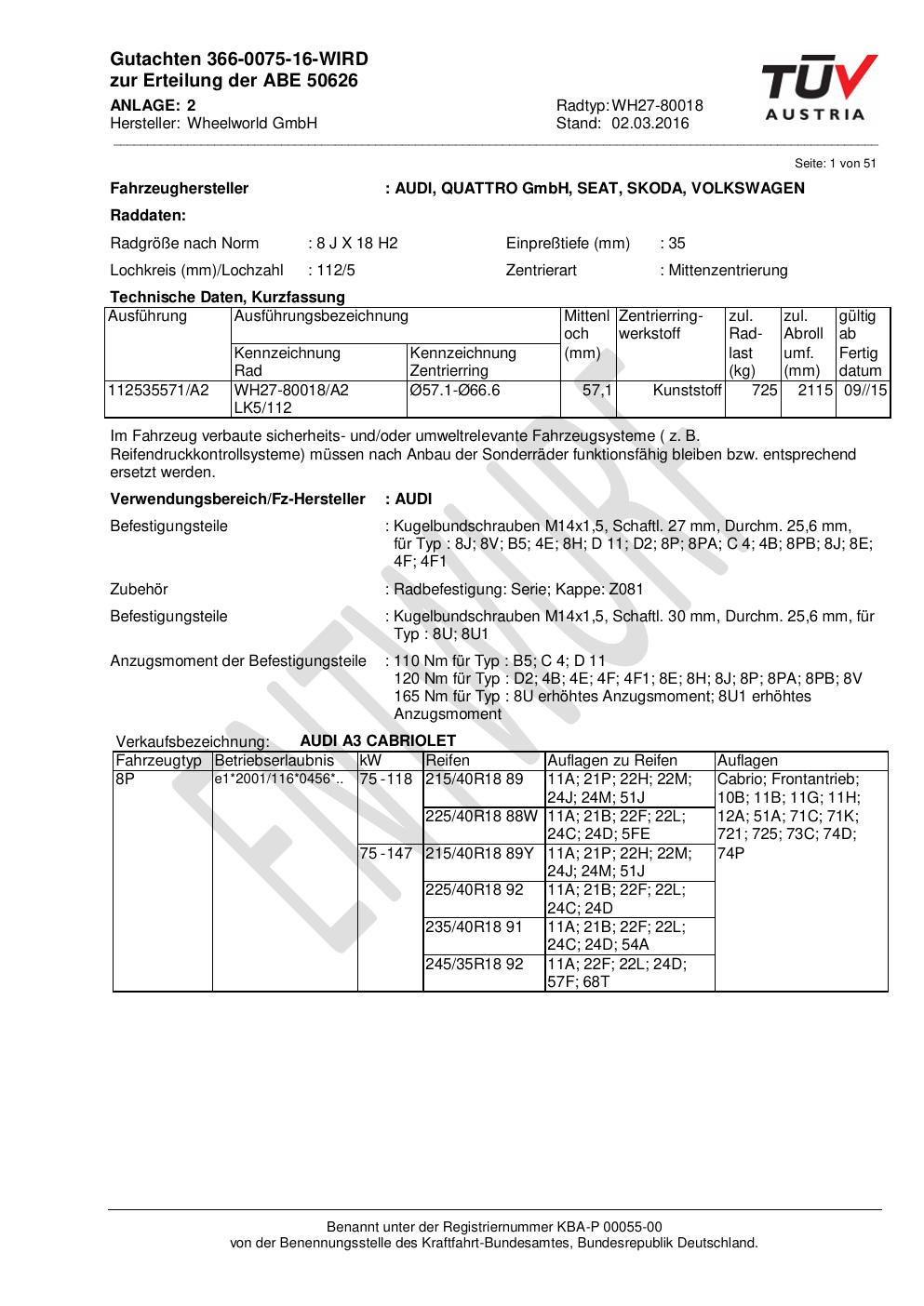 - Stimmt die KBA-Nummer auf der Felge mit diesem Dokument überein?