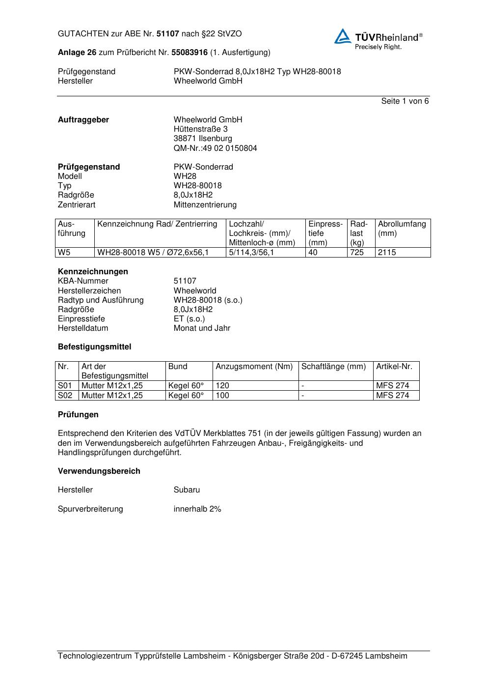 Dieses abe gehört zur Felge Wheelworld WH28-80018 in ET0 mit KBA 51107. Die Seite ist dafür gedacht, dass du schnell prüfen kannst, ob KBA, Design und Größe zu deiner Felge passen und danach direkt das richtige PDF lädst.