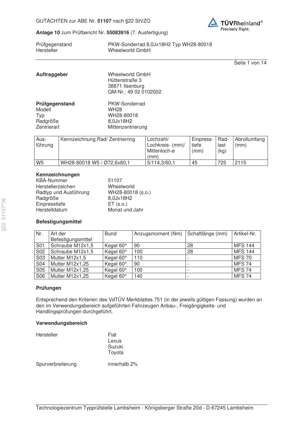 Dieses abe gehört zur Felge Wheelworld WH28-80018 in ET0 mit KBA 51107. Die Seite ist dafür gedacht, dass du schnell prüfen kannst, ob KBA, Design und Größe zu deiner Felge passen und danach direkt das richtige PDF lädst.
