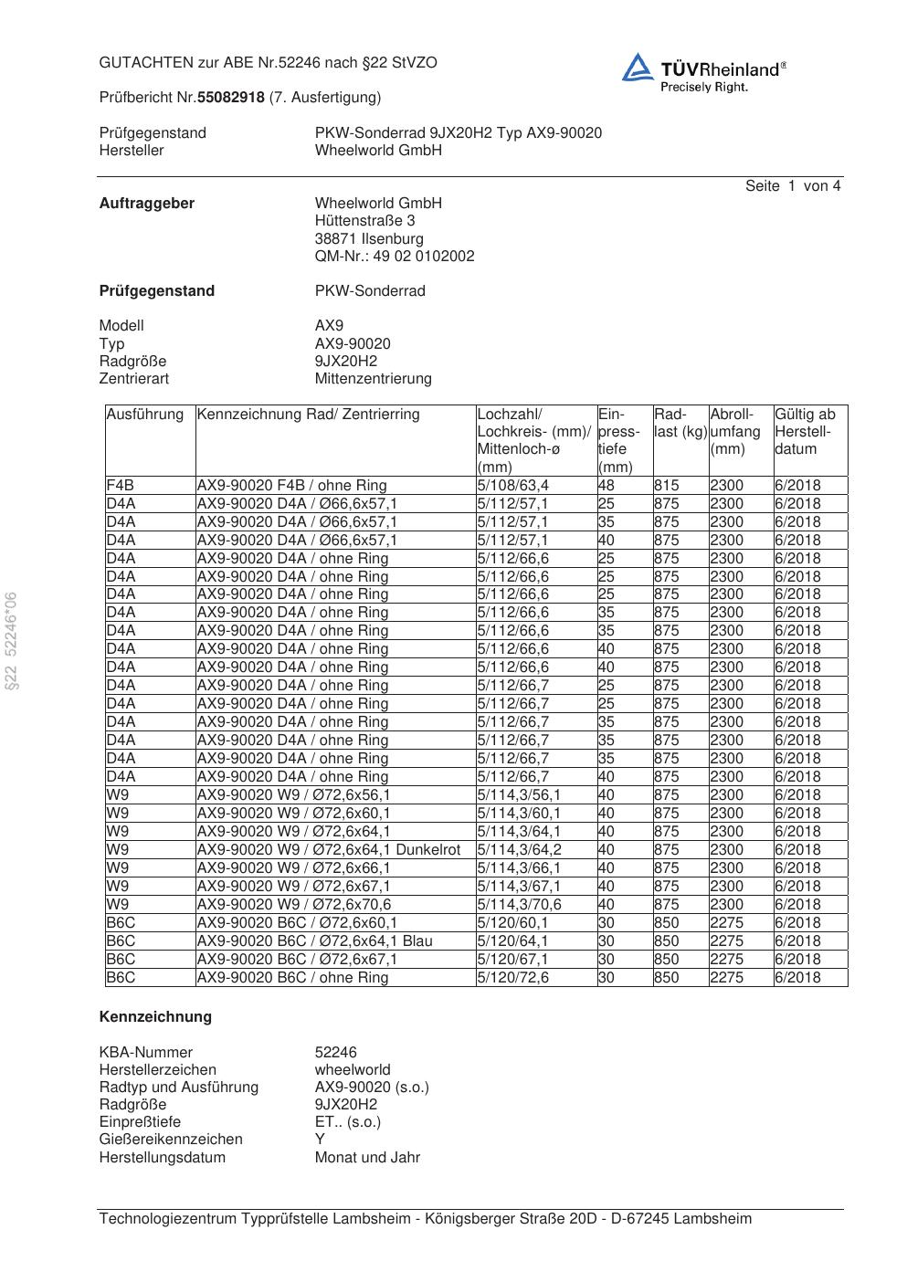 Dieses abe gehört zur Felge Wheelworld AX9-90020 in ET0 mit KBA 52246. Die Seite ist dafür gedacht, dass du schnell prüfen kannst, ob KBA, Design und Größe zu deiner Felge passen und danach direkt das richtige PDF lädst.